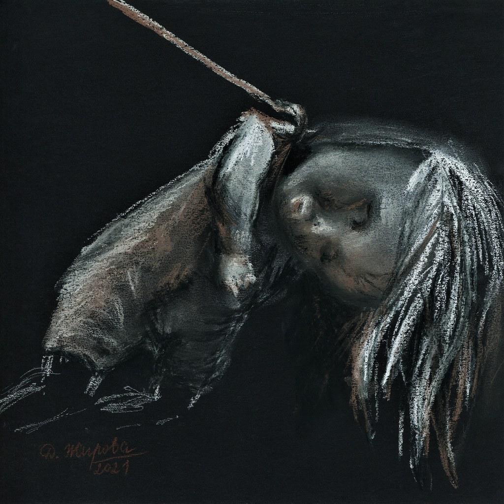 Soft pastel on black paper