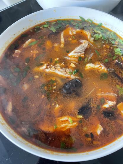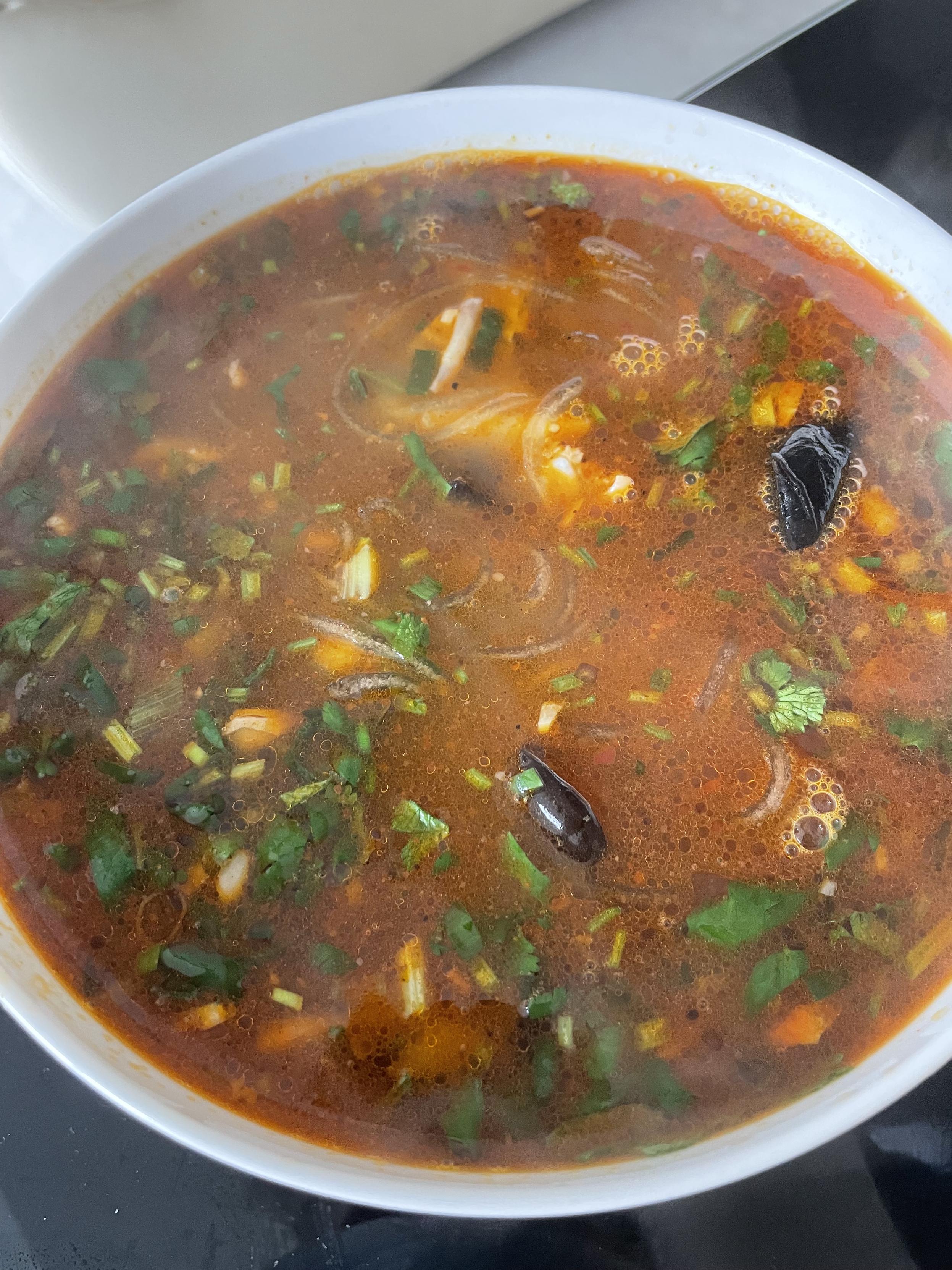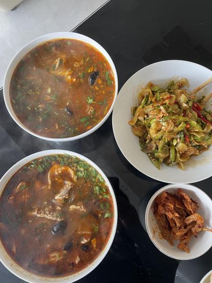 冬天的羊肉汤,凉拌儿菜。