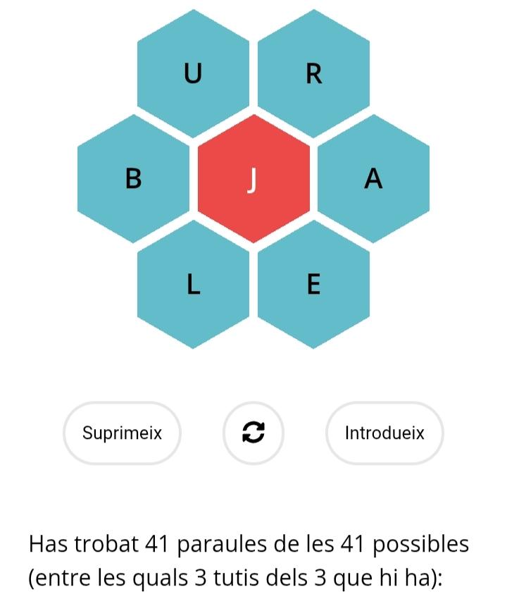 41 paraules de les 41 possibles (entre les quals els 3 tutis)