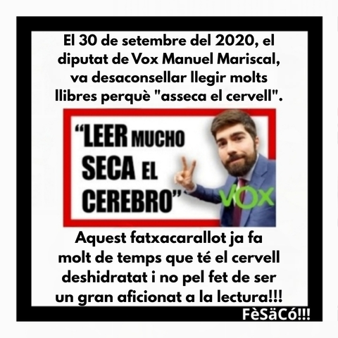 El 30 de setembre del 2020, el diputat de Vox Manuel Mariscal, va desaconsellar llegir molts llibres perquè "asseca el cervell".