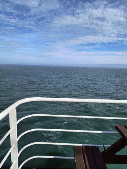 Nach kurzer Fahrt vestehe ich, was #very_raffty bedeutet: Das Meer ist wild, sehr wild; die ersten #Seekranken kauern auf dem Boden oder in der #Kabine, #Spucktüten werden verteilt, beim #Abendessen waren wir nur 10 Leute. Dank unserer #Innenkabine ist es bei uns naja, nicht angenehm, aber nicht so schlimm. Wir liegen auf den Betten und reden über die letzten Wochen auf unserer #grünen_Insel und werden in den Schlaf geschaukelt.