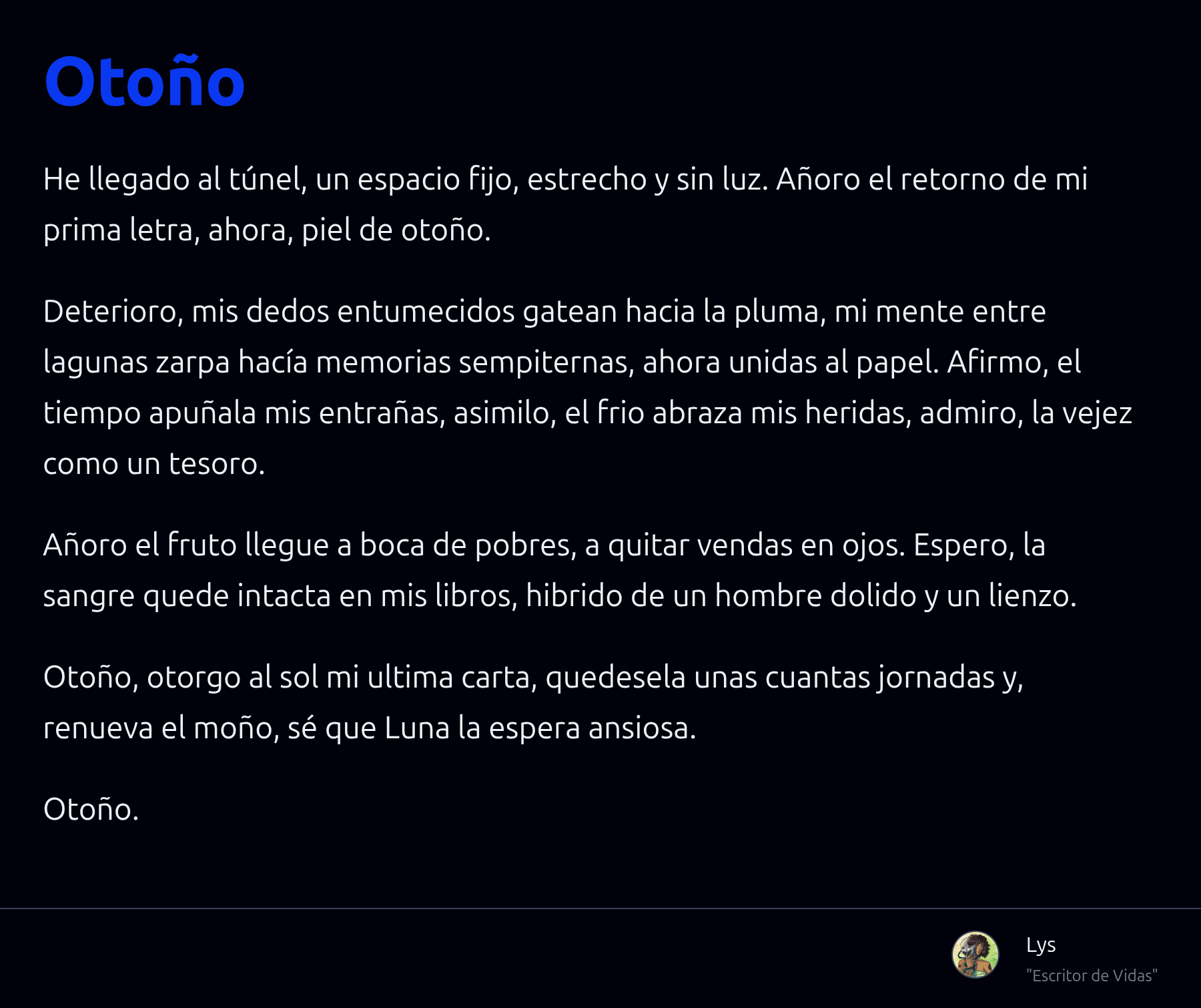 - Intento ser escritore: actualmente estoy escribiendo una novela y ando con otros proyectos.