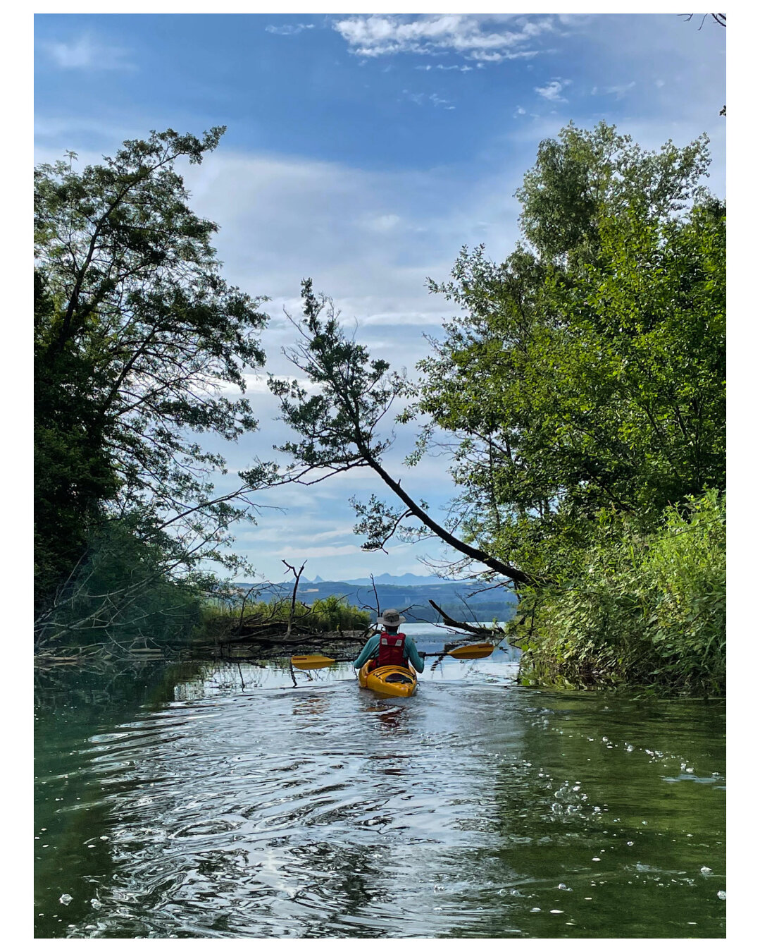 Ne me lasse de ces moments suspendus, des mouvements doux, glissements. De la musicalité du bois de la pagaie qui fend l’eau, des éclaboussures, de la morsure légère et froide sur le bout de mes doigts. J’aime le ciel, quel qu’il soit, les rives inaccessibles, les bois flottants, les caresses ou claques de la brise ou du vent, les oiseaux qui s’envolent ou se laissent dériver, indifférents. J’aime le silence qui n’en est pas. J’aime ce que je devine ou fantasme sous l’eau. J’aime nos pique-nique rapides, parce que bon il commence quand même à faire froid. J’aime te suivre, te précéder, ou pagayer à tes cotés. Mon regard s’accroche à tout, se noie dans tout. Privilège de simplement se fondre, se laisser porter, oublier, quelques heures durant, tout ce qui pèse, ronge, vrille, étouffe et paralyse.