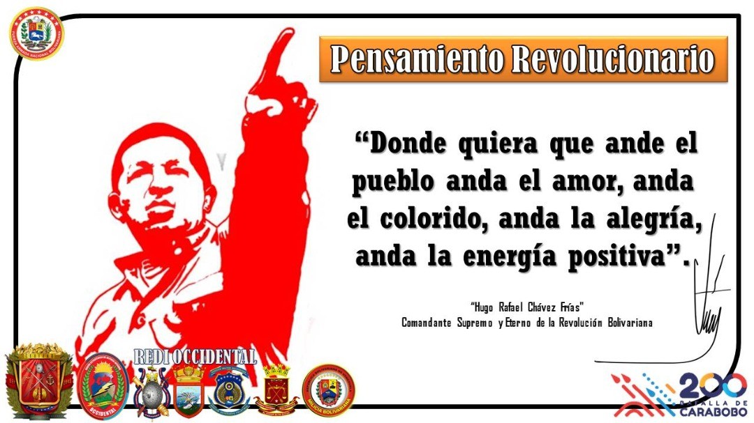 #6Oct #PensamientoRevolucionario "Donde quiera que ande el pueblo anda el amor, anda el colorido, anda la alegría, anda la energía positiva". Hugo Rafael Chávez Frías, Comandante Supremo y Eterno de la Revolución Bolivariana.