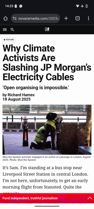 We are Shut The System. A covert direct action group targeting the financiers of climate collapse and genocide.