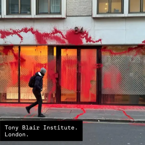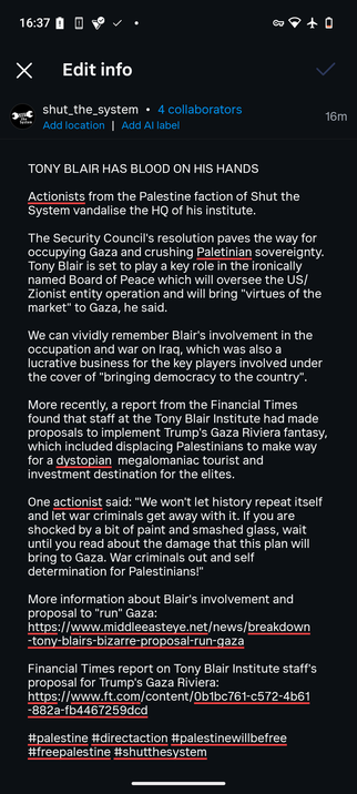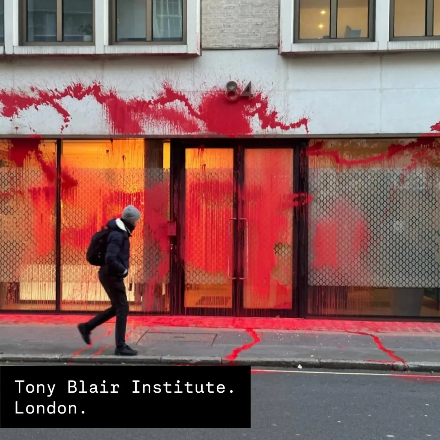 STS actionists hit Tony Blair Institute last night. Tony Blair cannot be trusted with Gaza.
