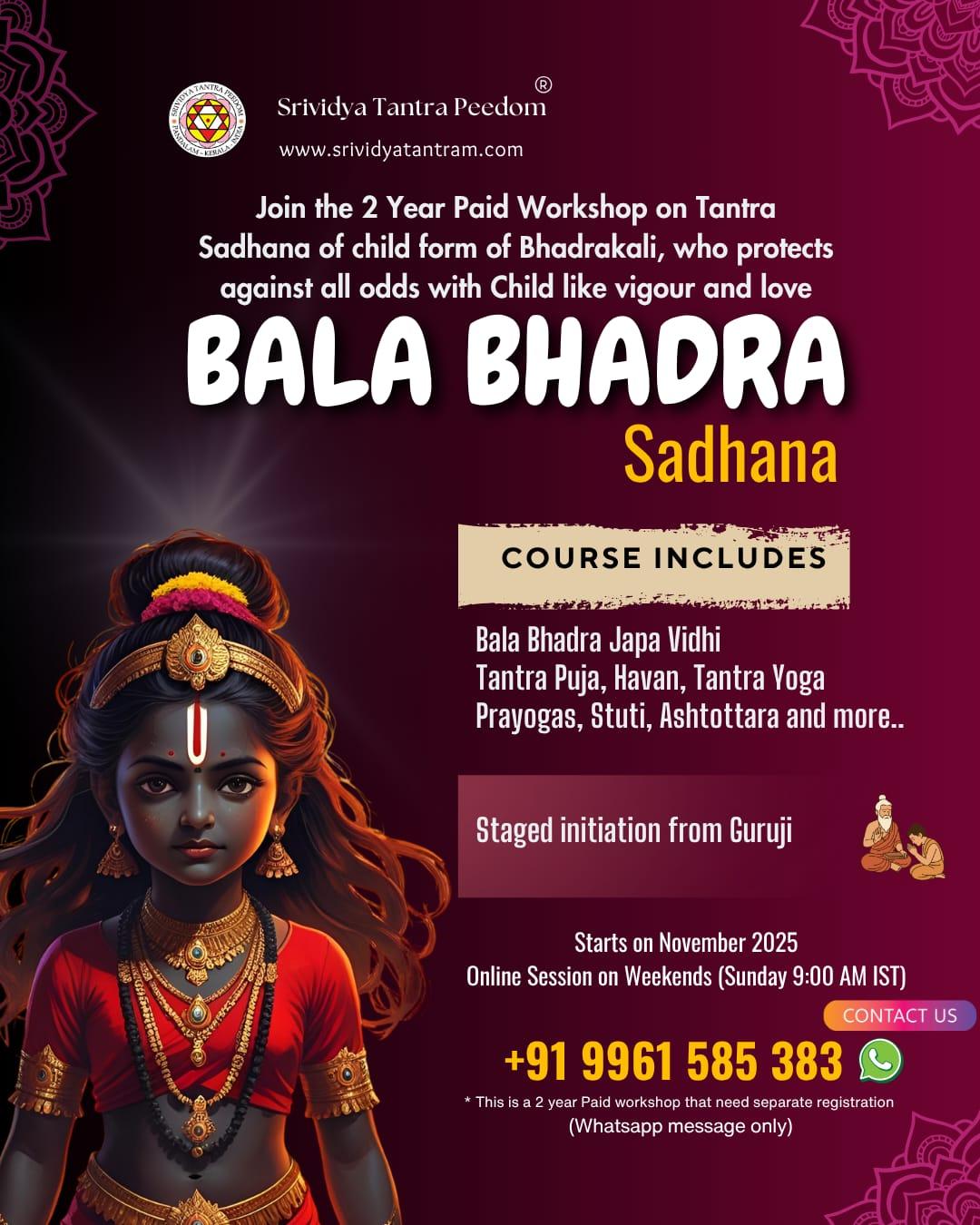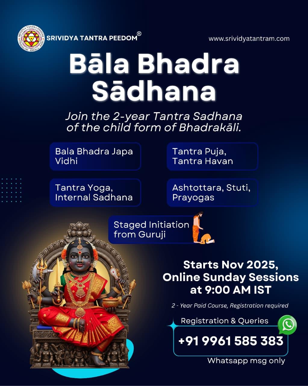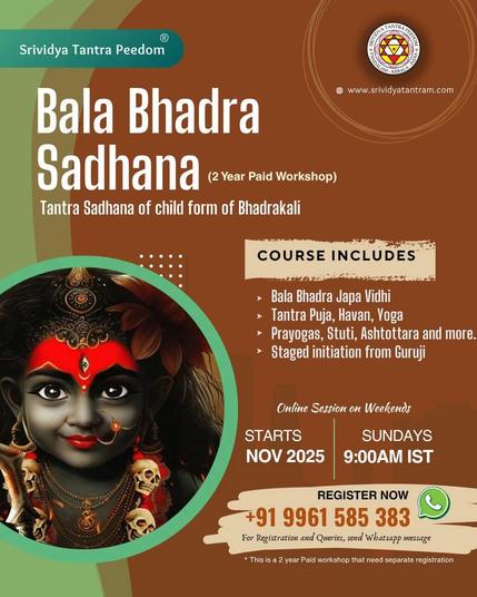 🪷 2 Year course on *Bala Bhadra (Child form of BhadraKali)* from November.