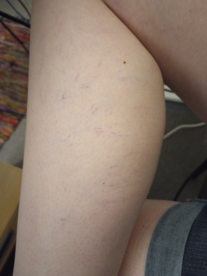 Here is my solution for the unsightly spider veins on my right calf. Full color coming in 2 weeks!