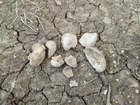 I found these 8 Gryphea dilatata fossils within 15 seconds of searching in my mom's back yard. Best back yard ever!