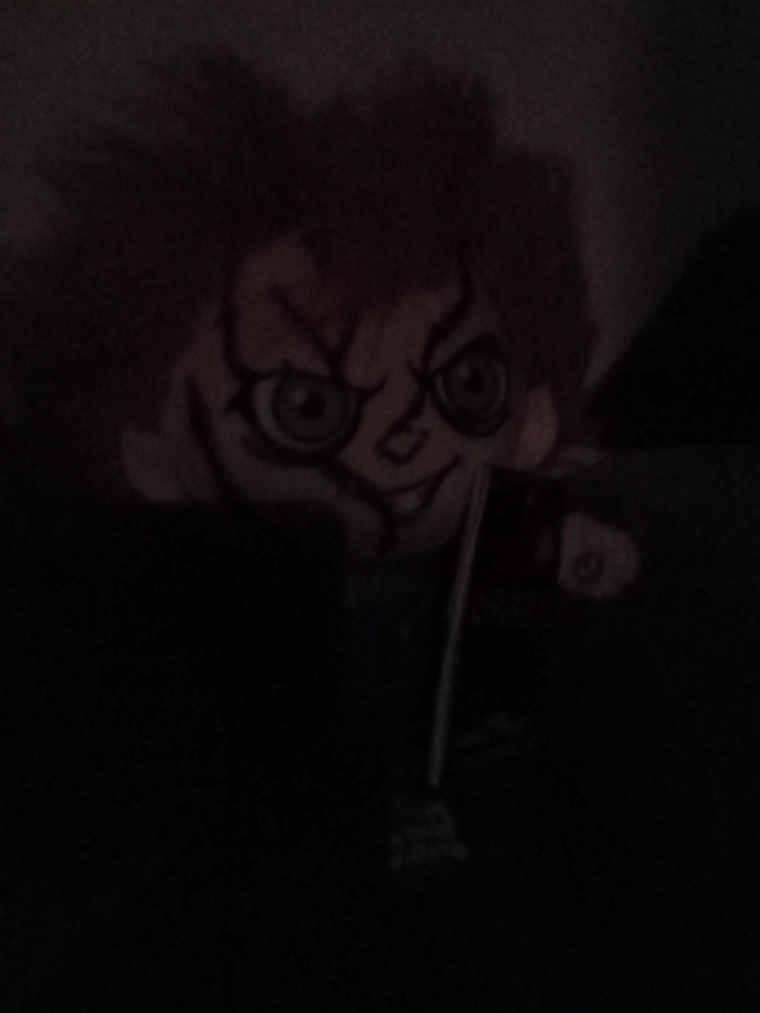 Earlier this year my husband left a Michael Myers toy on my nightstand while I was asleep, and it startled me when I woke up. This morning I woke up to this Chucky plush about a foot from my face.