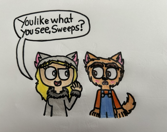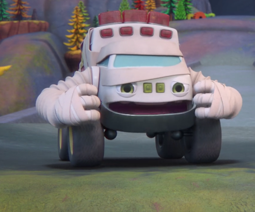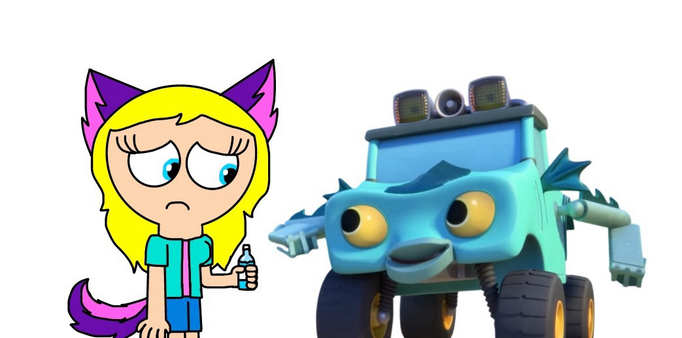 Mighty Monsterwheelies: Syd decided to show her new Halloween costume to Sweeps Wolfman.