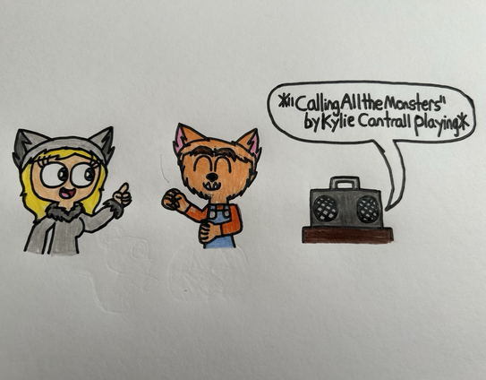 Mighty Monsterwheelies: Syd and Sweeps Wolfman are dancing to the song โCalling All the Monstersโ by Kylie Cantrall.