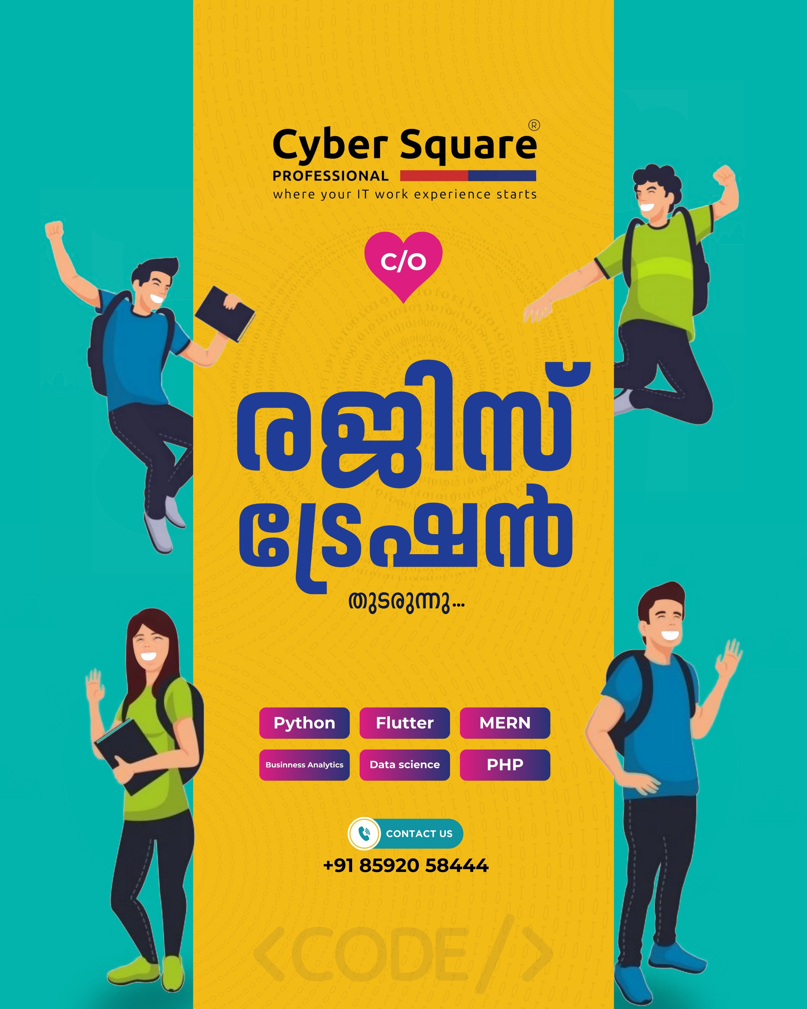▶️Cyber Square has all the resources✅ you need to learn coding, including.. 🏆UK/Canada/UAE Internship certifications activities 🏫Professional expertise under an International Ed-Tech brand Cyber Square Profession🙎♂️Freshers/experienced/non-IT candidates can apply 🌐Online, Offline, Hybrid Mode ❗കൂടുതൽ വിവരങ്ങൾക്ക് വേഗം Dial ചെയ്യൂ...8592058444