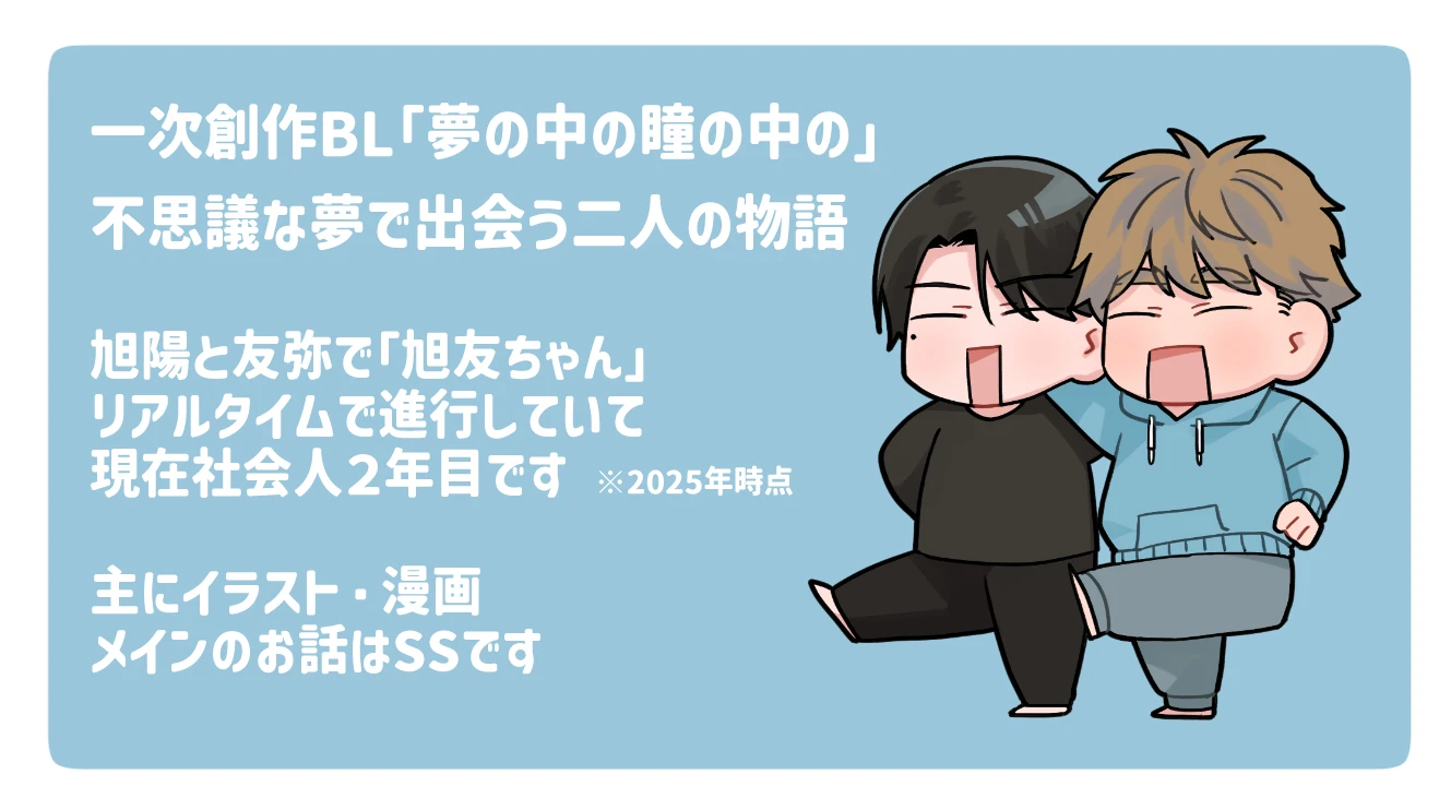 一次創作BL(タイトル:夢の中の瞳の中の)をやっています😀