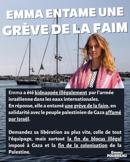 🔴Emma entame une grève de la faim en solidarité avec le peuple palestinien de Gaza affamé par Israël. Continuons la mobilisation !