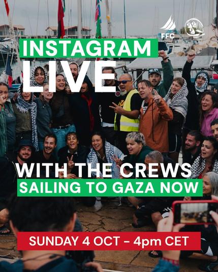 LIVE en direct de la nouvelle flottille avec la #freedomflotilla et avec #thousandmadleens en route pour Gaza.
