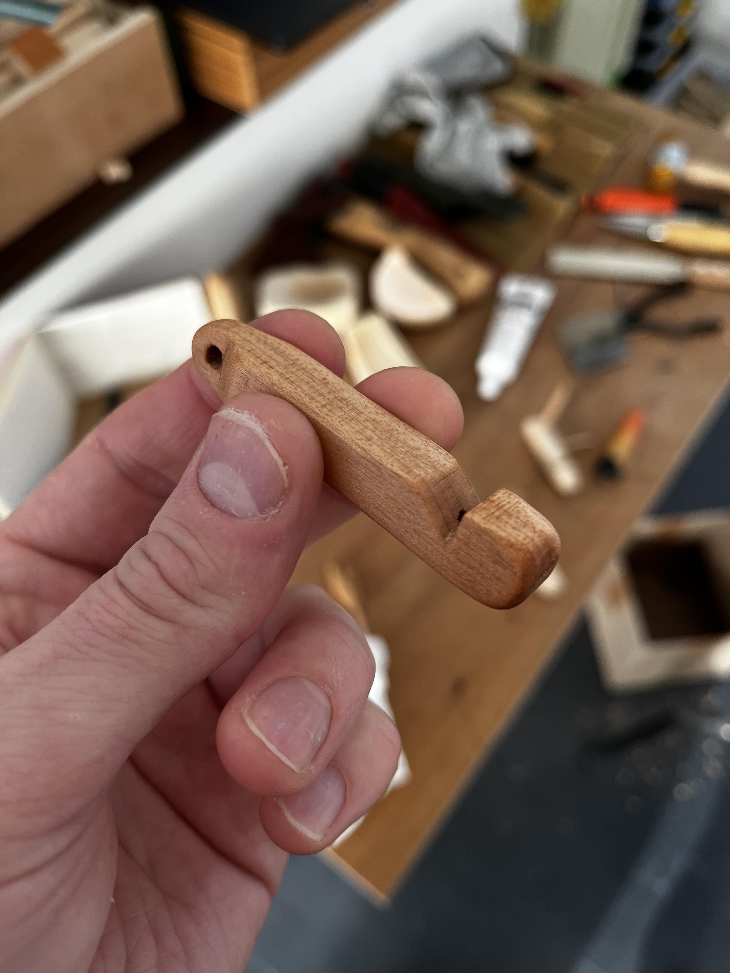 Whittled a small whistle from a piece of wood formally known as a table.