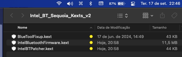 Intel Bluetooth ativado macOS Sequoia 15.0 usando as kests a baixo: