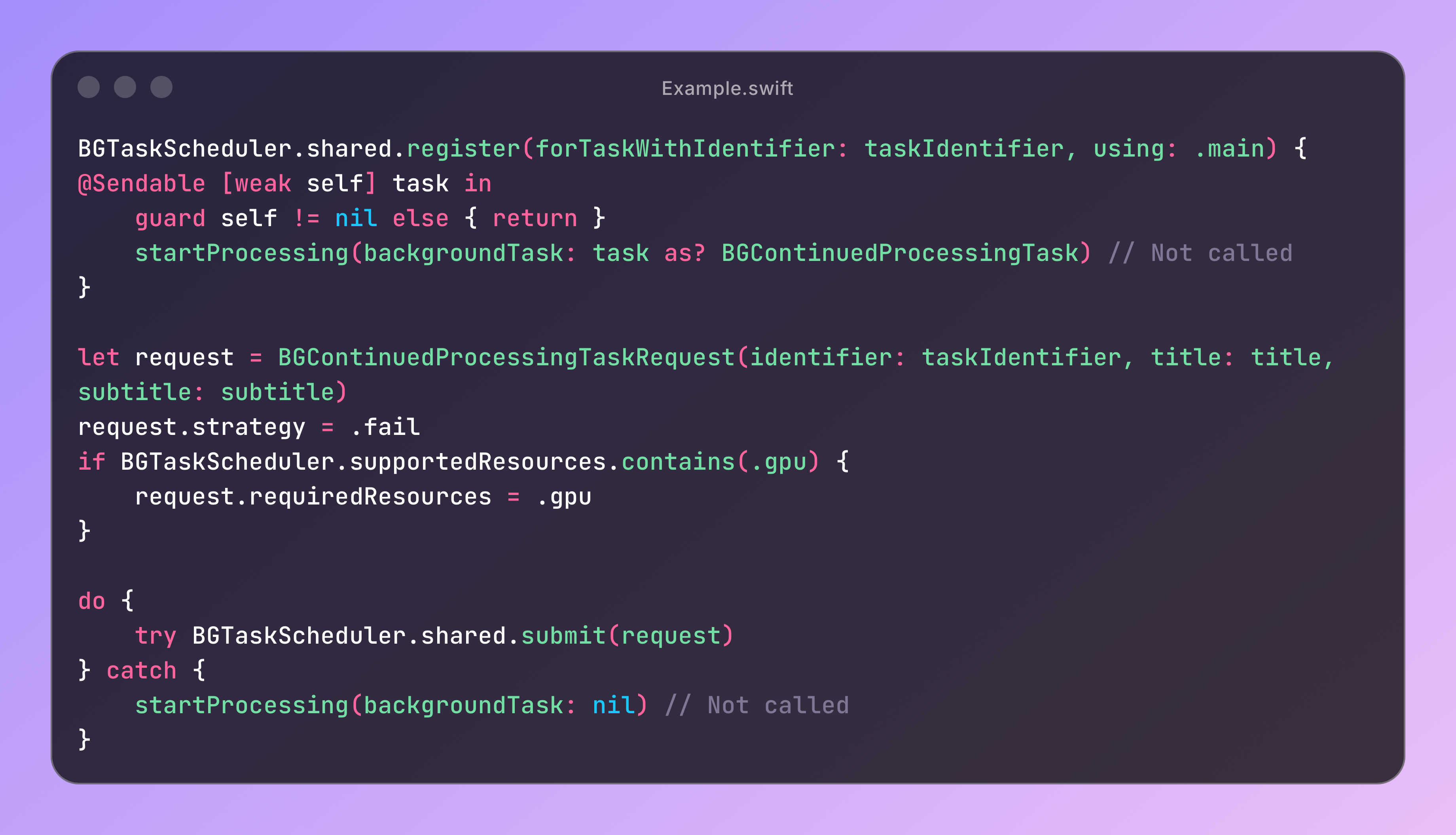 try BGTaskScheduler.shared.submit(request)