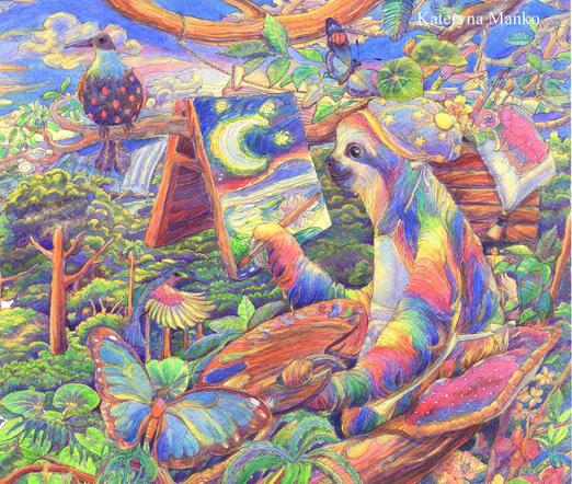#watercolour #watercolor #watercolorartwork #artwork #picture #picturebook #artinspiration #childrensbook #bookillustration #coverillustration #sloth #animalillustration #fantasy #wallart #galleryart #graphicart #graphicartist #colorfulillustration #surrealart
