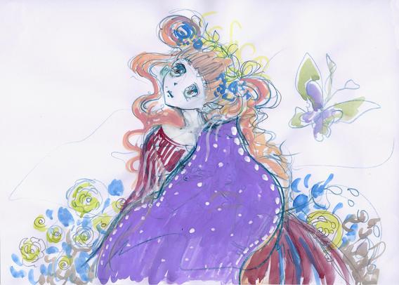 Mixed media (watercolor, gouache, ink and coloring pencils sketch)