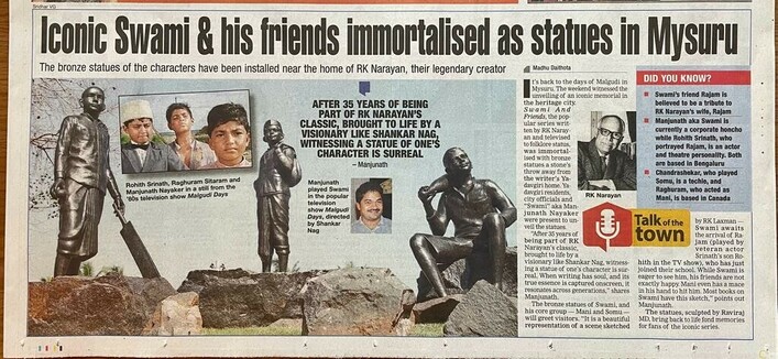 Historical day - I am honoured to be part of the unveiling ceremony of a famous character played by me - Swami of Malgudi Days - thanks to Shankar Nag sir.