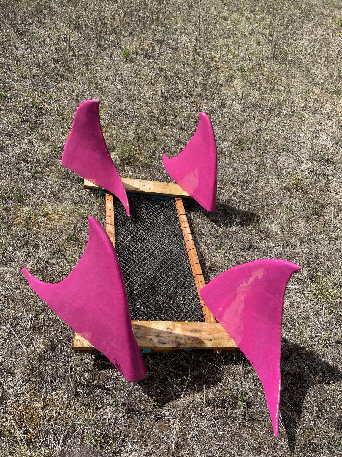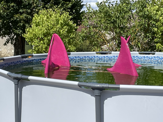 Tests de flottabilité dans une piscine. Je suis (presque) prêt pour installer l’œuvre en fin de semaine / Testing buoyancy in the pool. Almost ready to install the piece later this week.