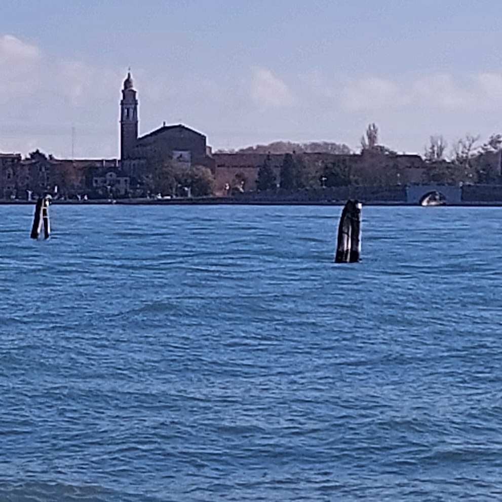 Buongiorno. They say you could swim the 200 meters from this end of San Michele to Murano. But I prefer to take the vaporetto. Saluti, Mafalda Cinquetti