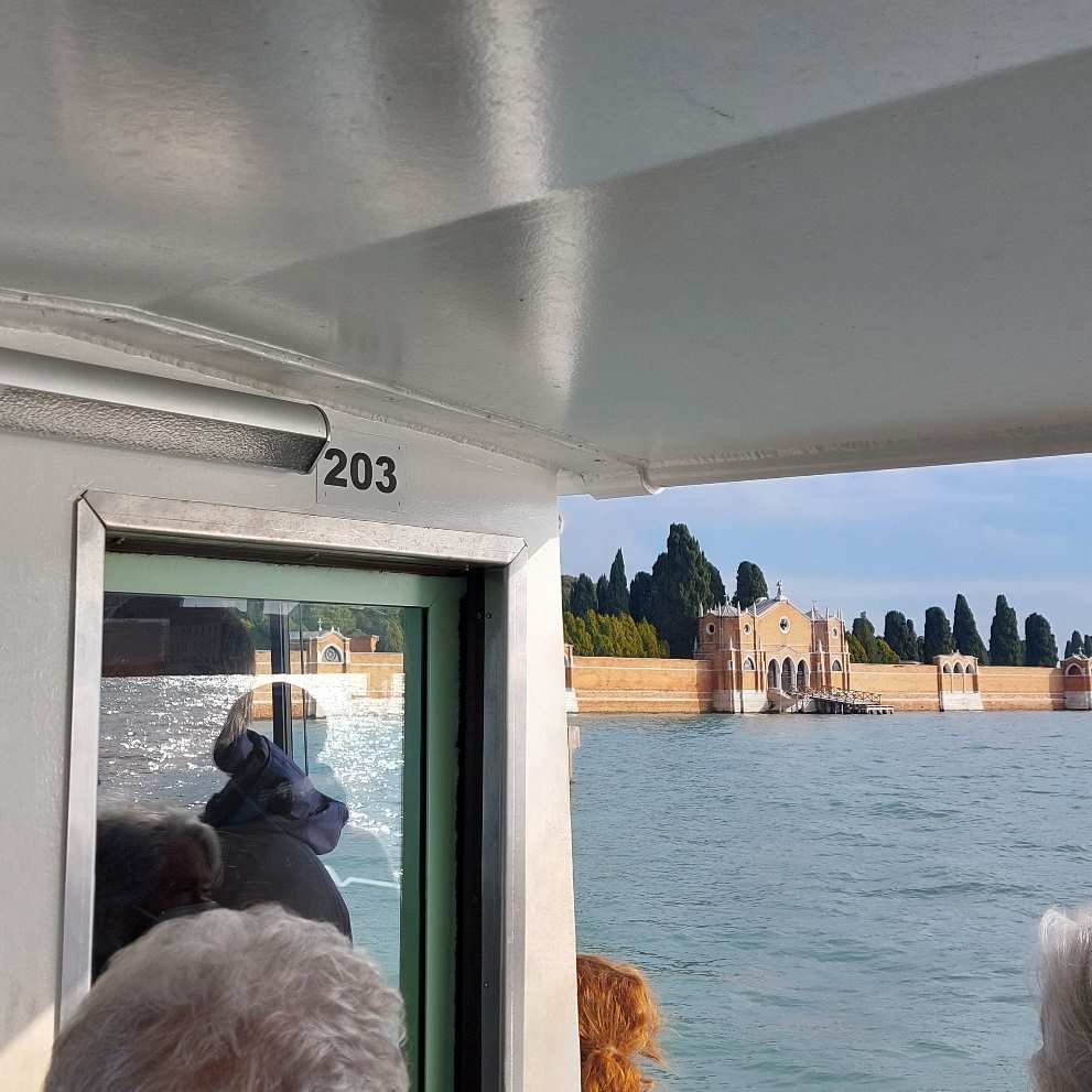 Buongiorno. This is the Cimitero. San Michele. Four more stops and I'll be home. Saluti, Mafalda Cinquetti