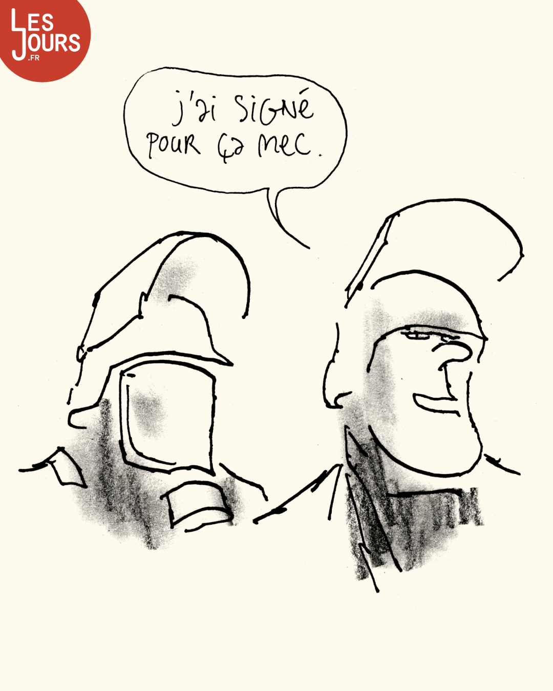 🪖Tous les samedis, le dessinateur Loïc Sécheresse tire un trait sur l’actu. Cette semaine, ne parlez pas de violences militaires à Sainte-Soline.