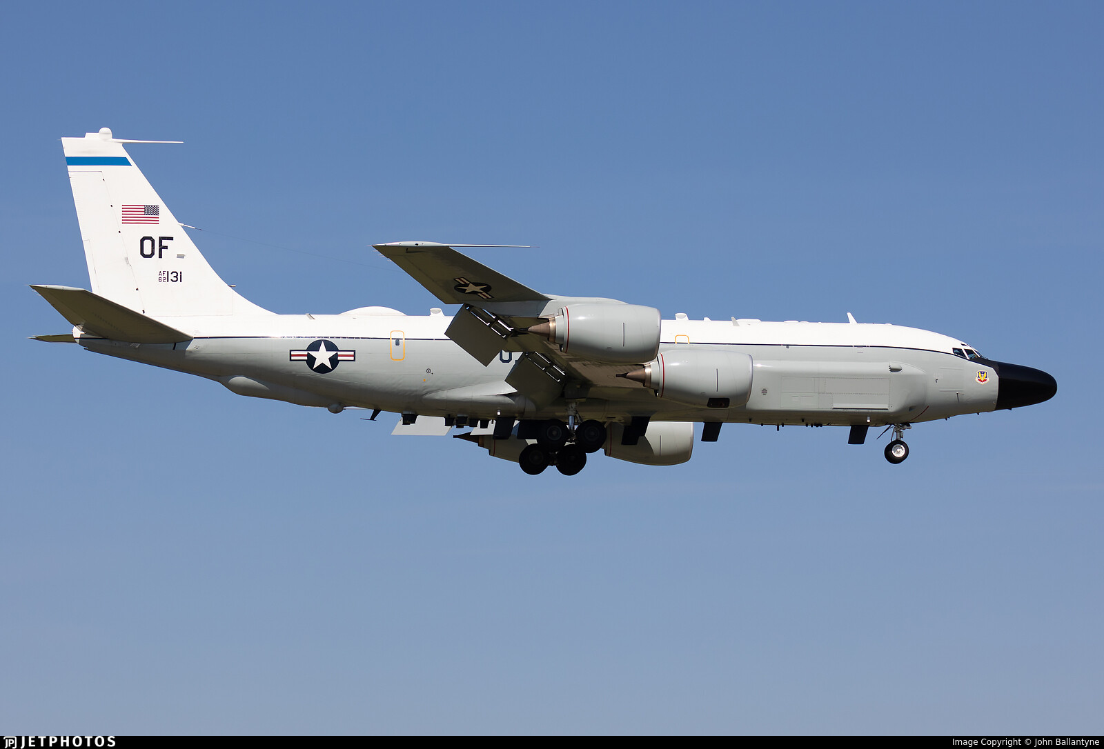 #KOMA - #TOPCT31 (RC-135W R135) United States Air Force @ 2425 ft and 15.6° frm hrzn, heading SW @ 15:33:21 - https://globe.adsb.fi/?icao=AE01CC #ProbablyLanding #adsb #AnyFlightTracker #rtmladsb #Bellevue Photo by: https://www.jetphotos.com/photo/keyword/62-4131