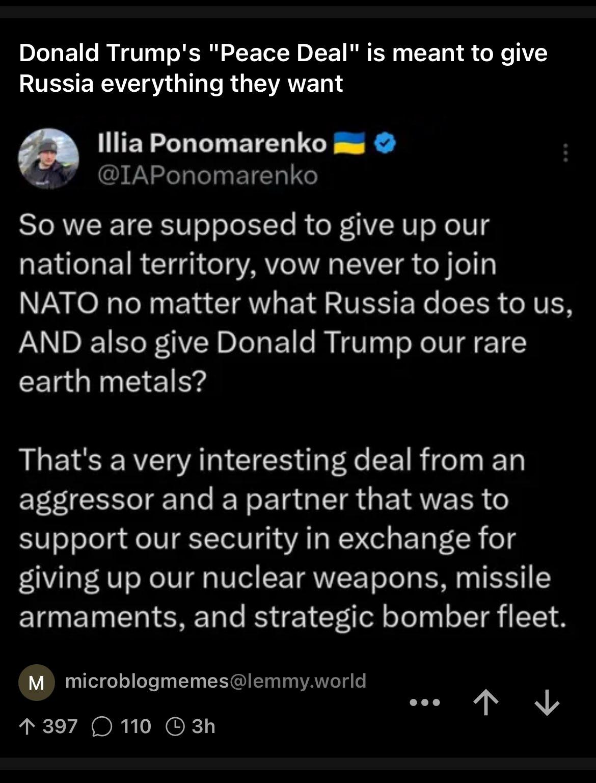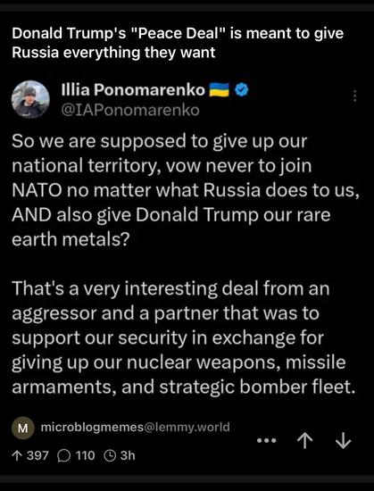 What a completely crappy negotiator Donald Trump is. He's trading a major Russian cyber criminal for a minor drug offender. He's trying to give away key elements of Ukraine's sovereignty and land before negotiations have even started, and he's taken Ukrainian membership in NATO off the table getting nothing in return.