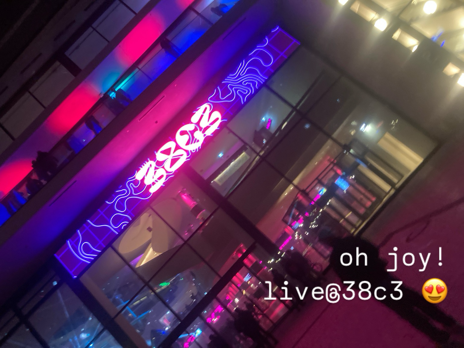 yaih! finally we arrived at 38c3 in hamburg! we are so excited.🤩 cu live on stage in the lounge at 10pm. 😍 #38C3