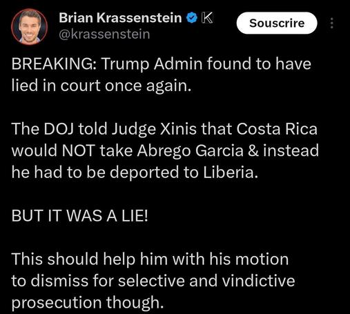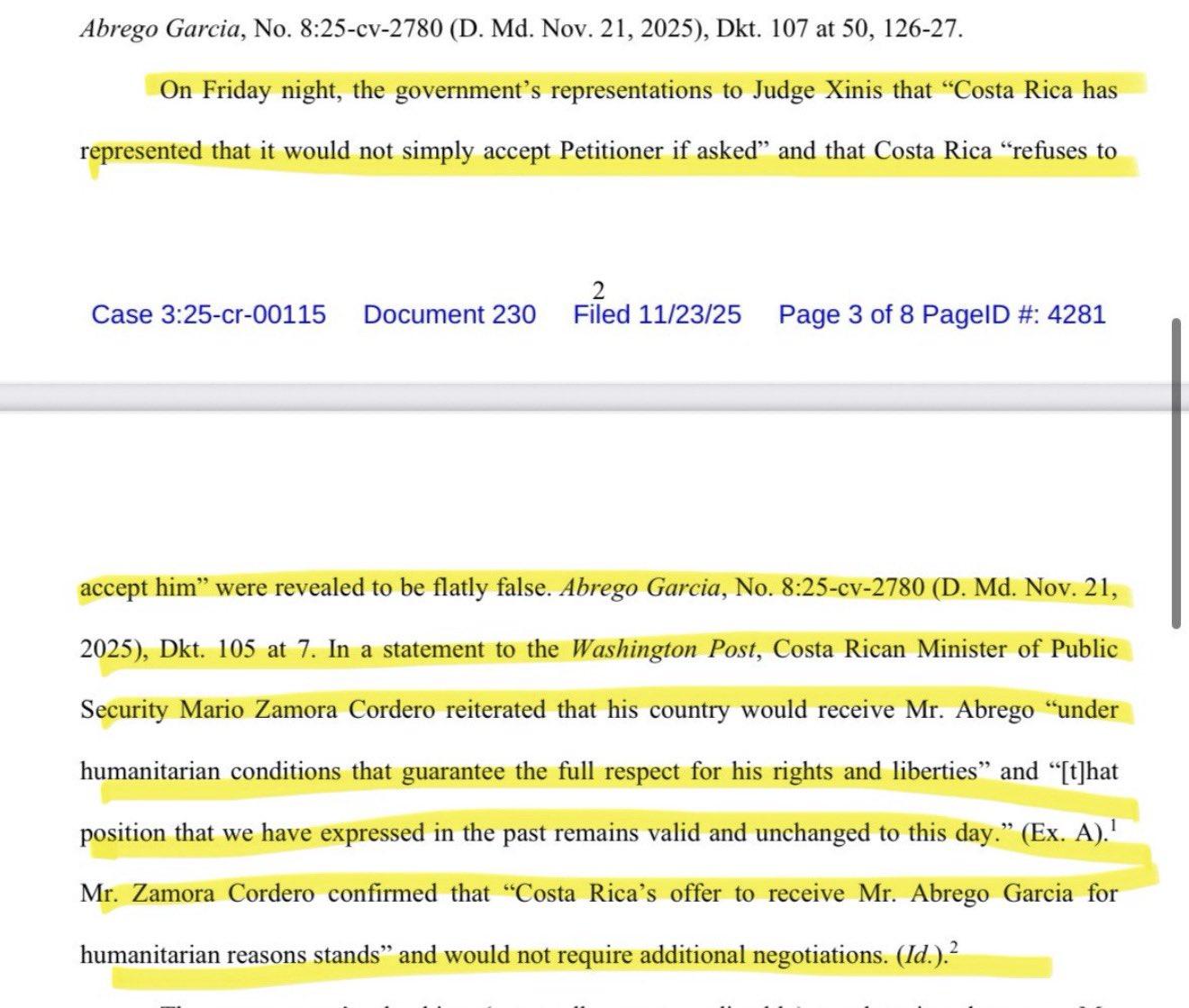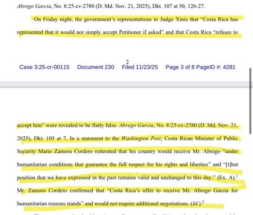 The #DOJ told Judge Xinis that #CostaRica would NOT take Abrego Garcia & instead he had to be deported to Liberia.