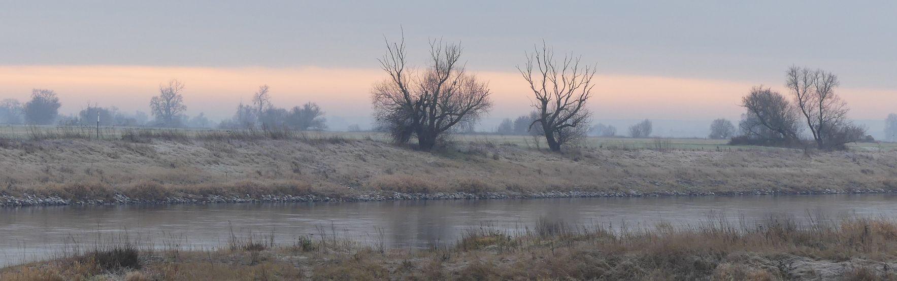 Konspiratives Treffen an der Elbe: drei Leute und eine Sumpfohreule.