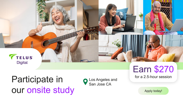 We’re looking for participants for an exciting onsite study just south of #Glendale and #SanJose!