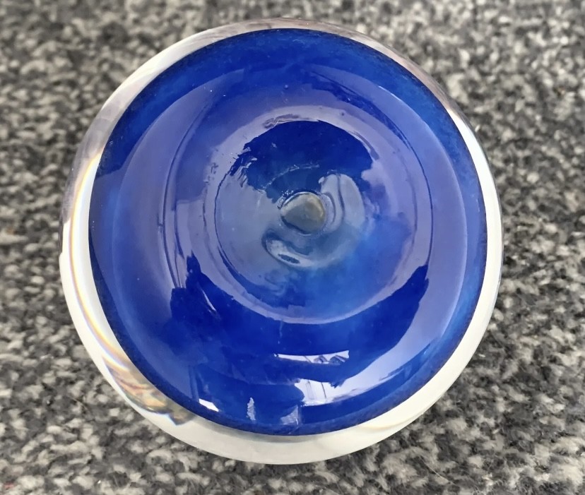 A lovely #blue coloured #art #glass #paperweight with pontil mark on the underside. Available on #ebid.