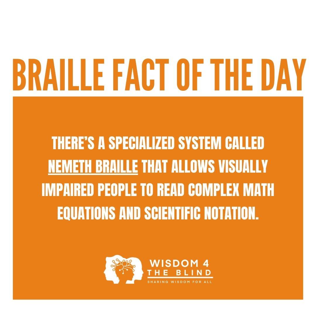 Did you know? Braille isn’t just for reading words, it can also represent complex math and science symbols! Thanks to Nemeth Braille, visually impaired learners can explore equations and formulas just like anyone else. #BrailleFact #InclusiveLearning #NemethBraille