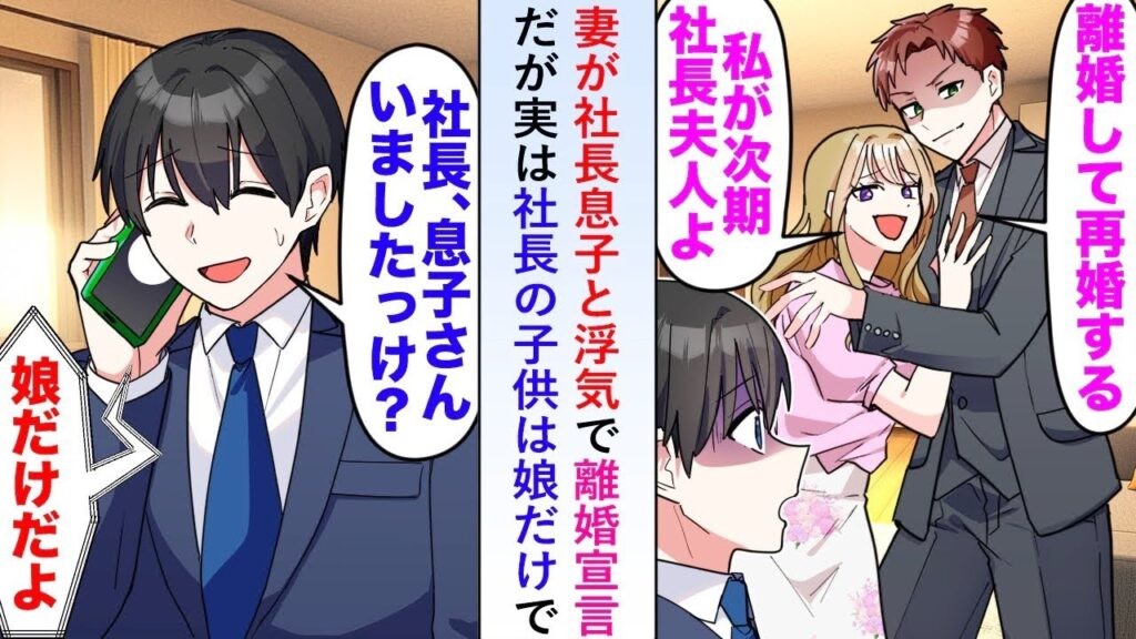 【漫画】妻が社長息子と浮気で離婚宣言だが「あれ?社長に息子さんはいないような…」実は社長の子供は娘だけで…【恋愛マンガ動画】 https://www.yayafa.com/2615156/ #オリジナル漫画 #スカッと漫画 #優しい気持ちになる話 #大人の恋愛 #家族ドラマ #恋の物語 #恋愛漫画 #感動ストーリー #社会人恋愛 #胸キュン漫画 #離婚宣言