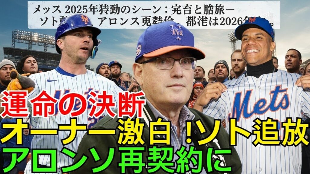 olmlb.com/629765/ 【ホットニュース】【メッツ運命の決断】オーナー・コーエンがソト追放を宣言した裏側!なぜアロンソ再契約に全てを賭けたのか?徹底解説 #MLB #MLB移籍情報 #NewYorkMets #アロンソ再契約 #スティーブコーエン #トレードの噂 #ニューヨーク・メッツ #ピートアロンソ #フアンソト #メジャーリーグ #メッツ #メッツ補強 #メッツ運命の決断 #野球分析