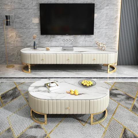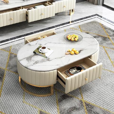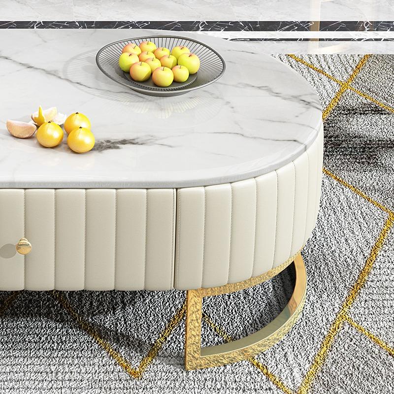 シンプルなデザインのサイドテーブル 高級大理石ベース 強化ガラス コーヒーテーブル