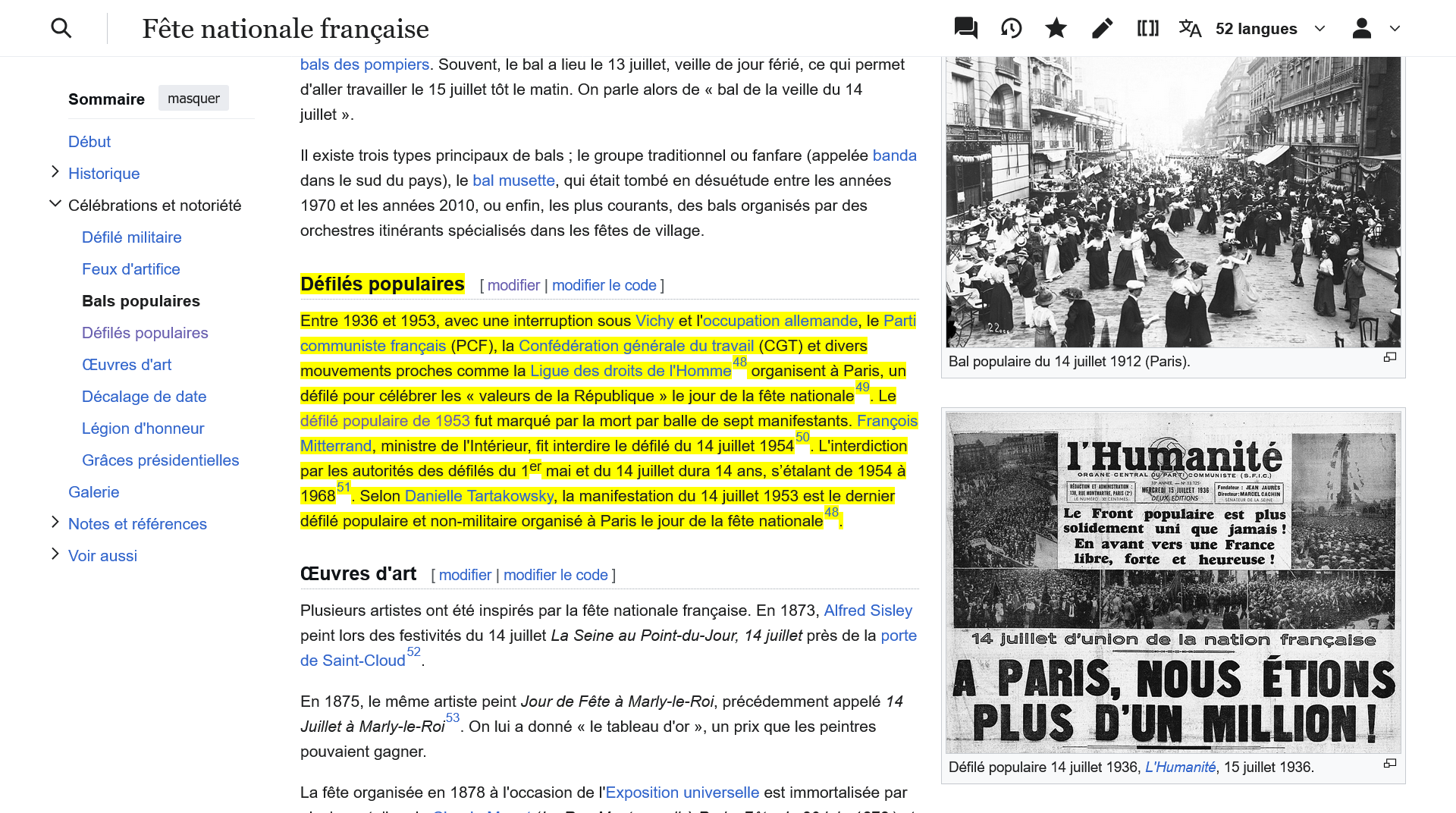 Mise à jour faite en mentionnant les défilés populaires parisiens lors de la fête nationale française. https://fr.wikipedia.org/wiki/F%C3%AAte_nationale_fran%C3%A7aise#D%C3%A9fil%C3%A9s_populaires #14juillet