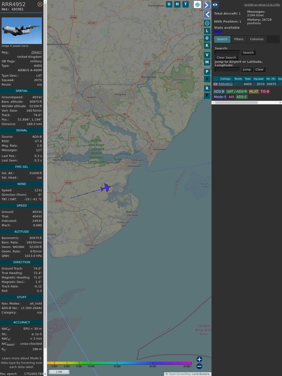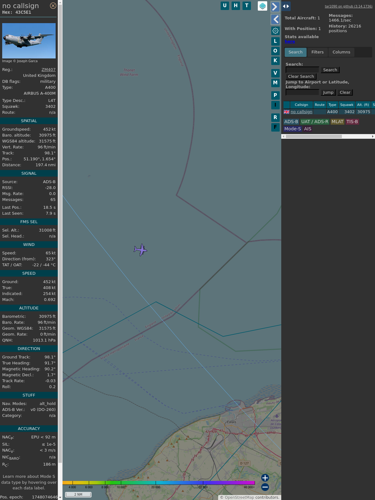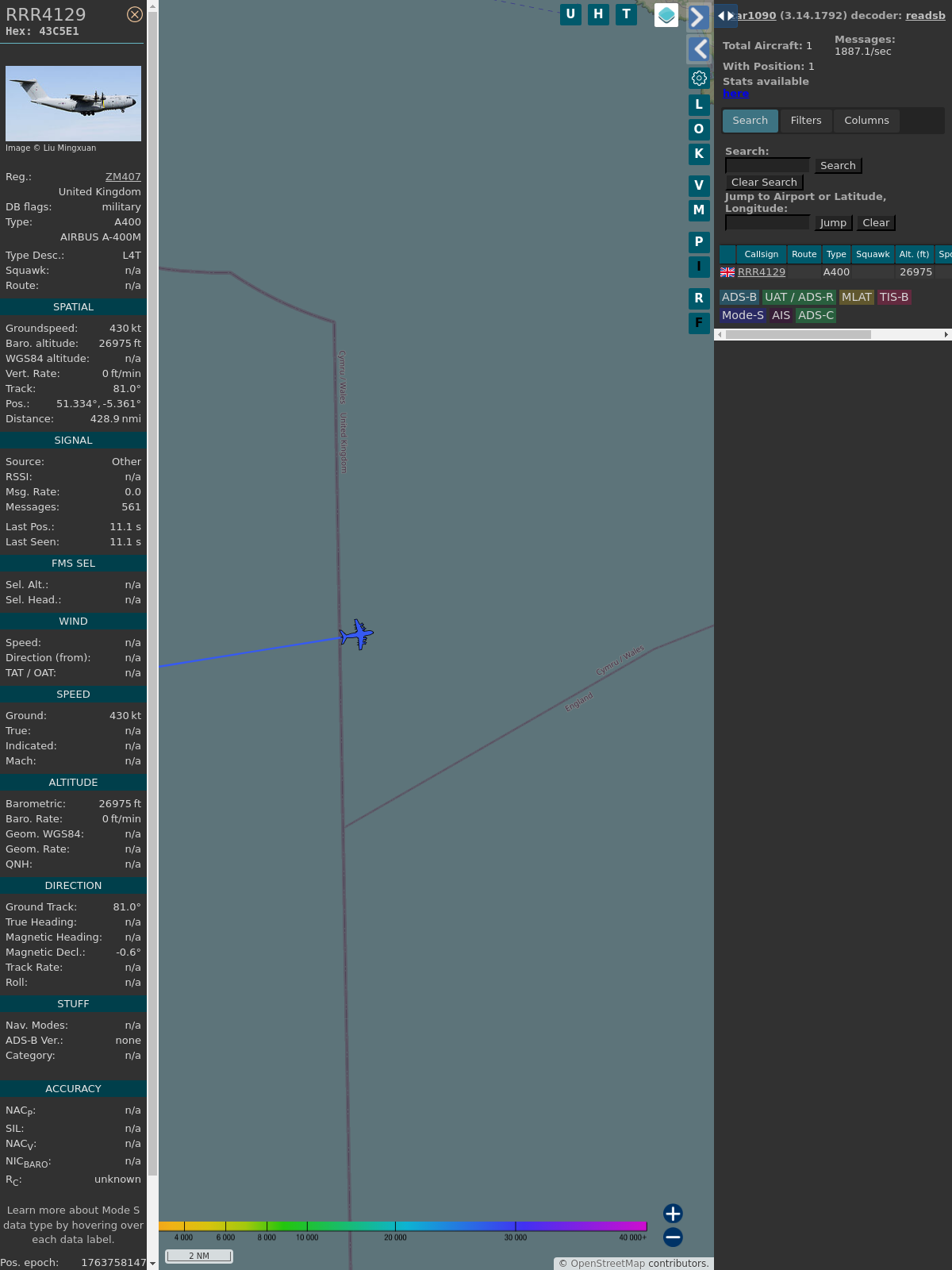 #PlaneAlert ICAO: #43C5E1 Tail: #ZM407 Flt: #RRR4129