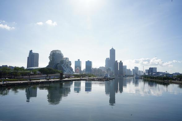 #asymmetry, with construction fences on one side and people in the fountain on the other.