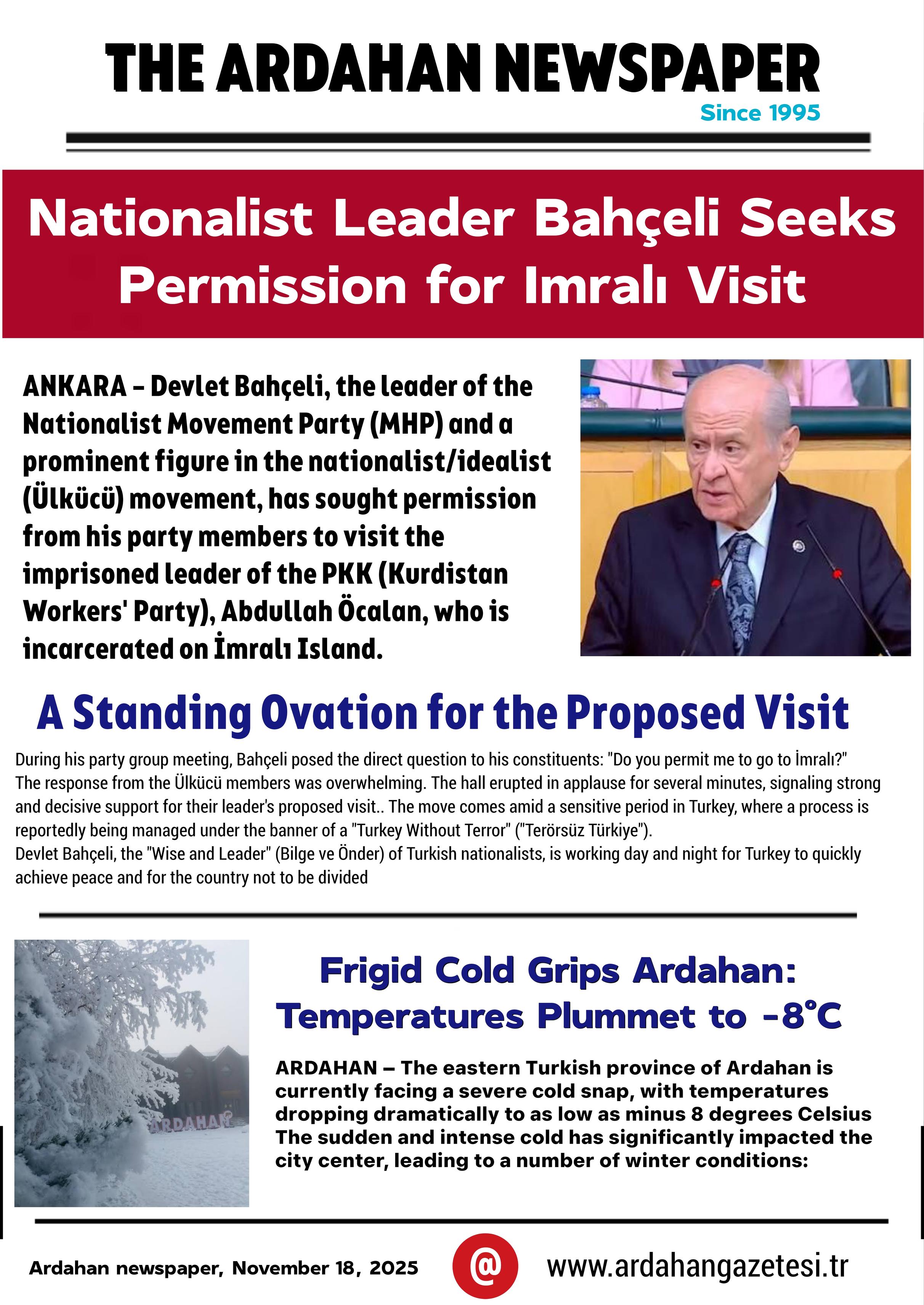 Ardahan newspaper Frigid Cold Grips Ardahan: Temperatures Plummet to -8°C..Nationalist Leader Bahçeli Seeks Permission for Imralı Visit #Ardahanhaberleri #Ardahan #Ardahangazetesi #kars #ığdır #Doğu #doğuanadolu #haber #gazete #Bahçeli #ülkücü #Ardahannewspaper #MHP #AKP #demParti #chp #Türkiye