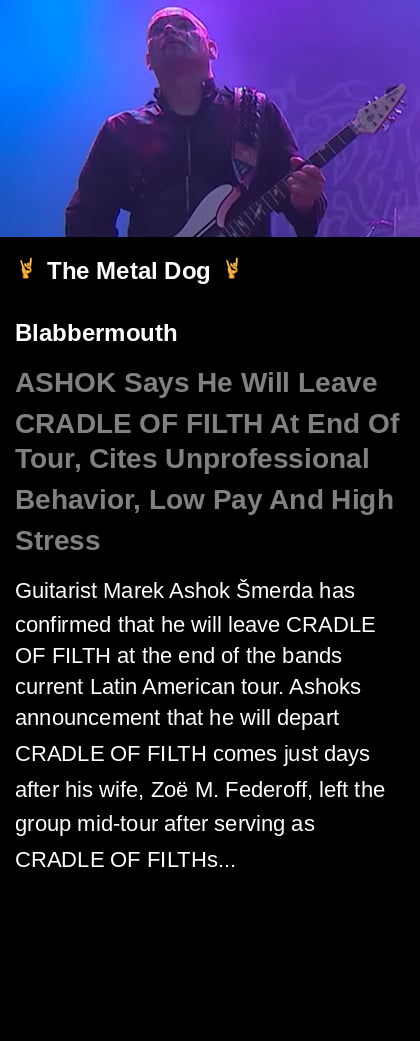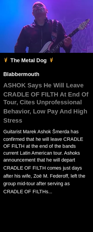 #ASHOK #CRADLEOFFILTH #SaysHeWillLeave #AtEndOfTour #tour #EP #announcement #guitarist #Blabbermouth #metal #music