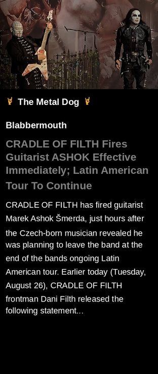 #CRADLEOFFILTH #ASHOK #FiresGuitarist #EffectiveImmediately #tour #newrelease #guitarist #Blabbermouth #metal #music