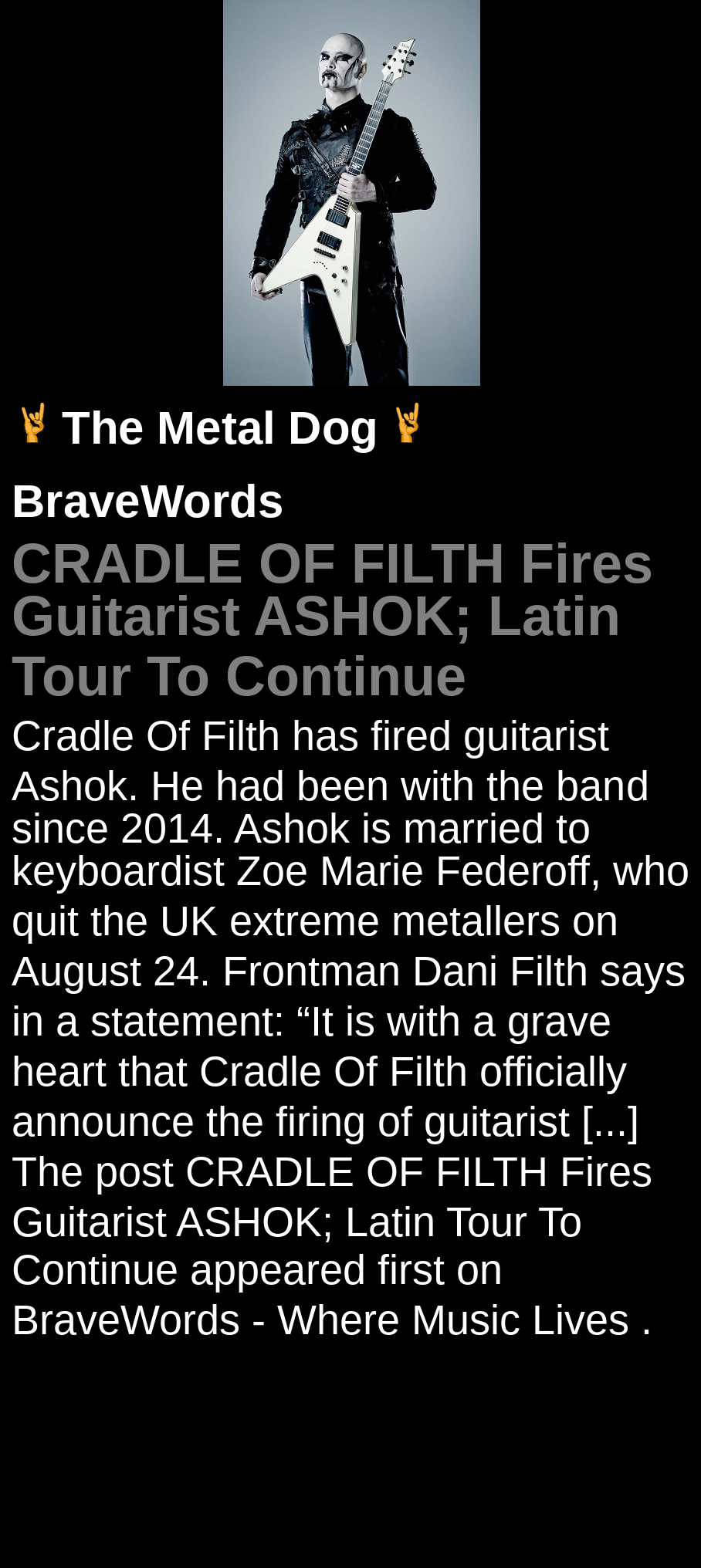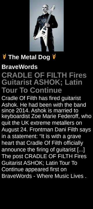 #CRADLEOFFILTH #ASHOK #FiresGuitarist #LatinTourToContinue #tour #announcement #guitarist #BraveWords #metal #music