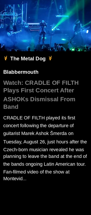 #CRADLEOFFILTH #ASHOK #Watch #PlaysFirstConcertAfter #tour #concert #EP #video #guitarist #Blabbermouth #metal #music