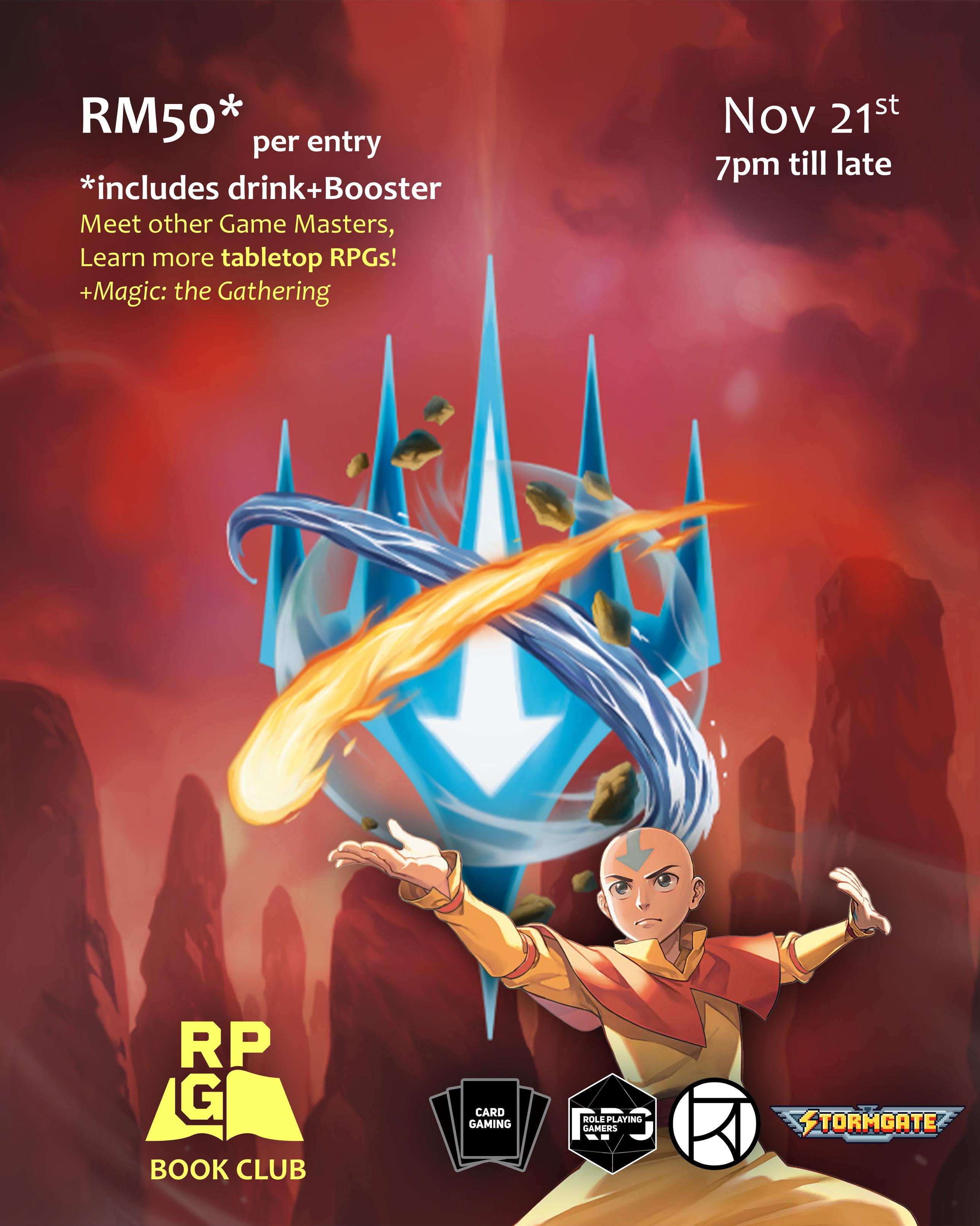 In conjunction with Magic: the Gathering's #ATLA collaboration, we're offering learn-to-play sessions of the game's new set! https://www.cloudjoi.com/shows/2819-rpg-book-club/ Beginners welcome! The action, adventure, and journey with the Gaang to master the elements and save the world with Magic: The Gathering! Come and learn-to-play the world’s Most Played Trading Card Game.